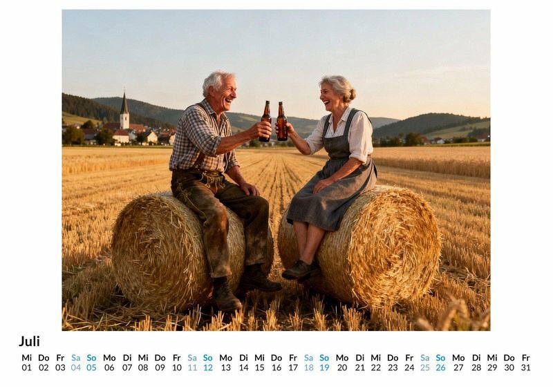 Wo der Wolpertinger noch per Anhalter fährt und die Sennerin ihren Milchkannen-Weitwurf für die Dorfmeisterschaft trainiert, da ist Bayern am urigsten. Dieser Kalender fängt genau diese skurrilen, nicht ganz alltäglichen Momente des Landlebens ein und präsentiert sie mit einem kräftigen Augenzwinkern. Er ist eine humorvolle Reise durch ein Bayern, wie es vielleicht nicht jeder kennt, das aber jeder sofort ins Herz schließt. Dieser Kalender ist die ideale Wahl für: * Liebhaber des bayerischen Lebensgefühls mit einem Sinn für Humor. * Suchende nach einem originellen Geschenk, das für Gesprächsstoff sorgt. * Freunde von fantasievollen Bildwelten, die gerne schmunzeln. Der Kalender "Bayerische Dorfgeschichten" fängt in zwölf Monatsmotiven den Charme des ländlichen Bayerns auf eine ganz besondere Art ein. Jede Szene erzählt eine kleine, augenzwinkernde Geschichte, die Tradition mit einem Schuss moderner Fantasie verbindet, vom Goaßlschnalzer-Wettbewerb auf dem E-Scooter bis zur Blaskapelle, die auf einem Heuballen probt. Diese Bilder entspringen einer digitalen Kreativität, die bekannte Klischees aufgreift und sie in unerwartete, komische Situationen verwandelt, die zum Lachen anregen. Mit dem Kauf dieses Kalenders kann man Folgendes erwarten: * Zwölf humorvolle Monatsmotive, die den Alltag aufheitern. * Ein Wandkalender für das ganze Jahr mit praktischem Kalendarium. * Ein Stück bayerische Lebensfreude für die eigenen vier Wände oder das Büro. Dieser Kalender ist eine Hommage an die kleinen, skurrilen Momente, die das Dorfleben so liebenswert machen, und eine Einladung, das bayerische Brauchtum nicht immer ganz so ernst zu nehmen. Ein Blick auf die Monatsblätter lohnt sich, um die Geschichten hinter den Bildern zu entdecken.