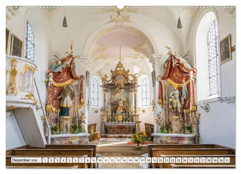 Dieser faszinierende Kalender vom Reisefotografen Peter Schickert zeigt auf 12 wunderbaren Farbfotos die ganze Pracht der Götteshäuser Bayerns von Würzburg bis Passau!