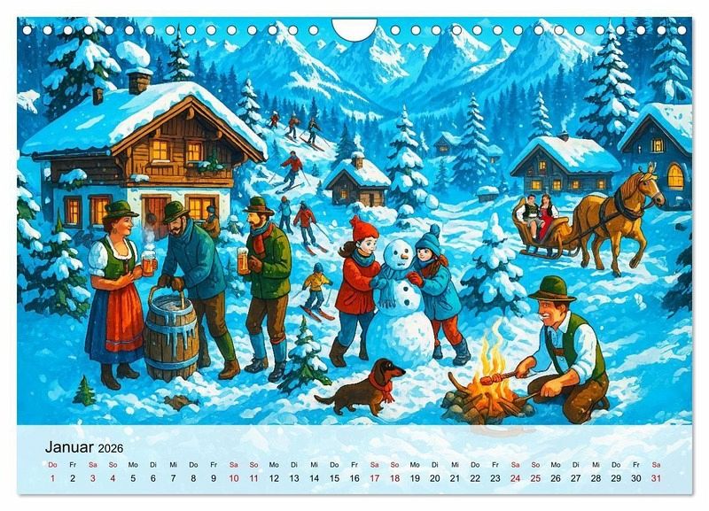 Der Kalender "Bayrische Wimmelbilder - Wo Heimat lebendig wird" zeigt Monat für Monat detailreiche KI-generierte Szenen aus dem bayerischen Alltag und Brauchtum. Vom zünftigen Maifest über die Sommeralmen bis hin zur Dorfweihnacht - hier wird Heimat greifbar. Ideal für Familien, Bayern-Fans und alle, die das Besondere suchen. Jedes Blatt steckt voller Figuren, Geschichten und liebevoller Überraschungen - ein Wimmelspaß für Groß und Klein.