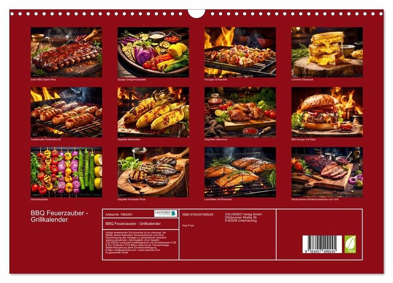 Erwecken Sie Ihre Leidenschaft für köstliches Grillen zum Leben mit unserem exklusiven BBQ Kalender! Entdecken Sie Monat für Monat saftige Fleischgerichte, knusprige Burger, herzhafte Barbecue-Rippchen und vieles mehr. Unsere hochwertigen KI-generierten Bilder fangen die Aromen und den Spirit des Grillens ein, während Sie durch das Jahr blättern. Holen Sie sich jetzt Ihren Kalender und lassen Sie sich von den unwiderstehlichen Grillkreationen inspirieren!