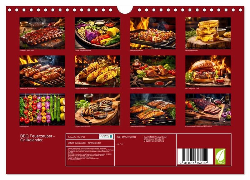 QUALITÄT - Hochwertiger Fotokalender mit 12 wunderschönen Motiven auf lichtbeständigem Bilderdruckpapier, robuste Spiralbindung mit Aufhängebügel.NACHHALTIG - deutliche Abfallreduzierung durch bedarfsgerechte Einzelstückfertigung, umweltfreundliches FSC-zertifiziertes Papier, Produktion in Deutschland, klimabewusste Logistik.PERFEKTES GESCHENK - Kalender für Freunde und Familie, für Kinder und Erwachsene, jung und alt, zu Weihnachten, Geburtstag oder zwischendurch.VIELFALT - Bildkalender in verschiedenen Formaten, z.B. DIN A5, DIN A4, DIN A3 sowie DIN A2. Ob Naturmotiv, Gemälde oder Fotos, ideal für ein persönliches Wohlfühlambiente.Ein Jahr des Barbecue Grillens und Genießens von Autor(in): Anja Frost