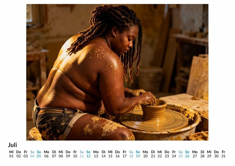 Schönheit kennt keine Normen. Der Kalender "BBW" ist eine Hommage an die Fülle des Lebens und die Kraft weiblicher Formen. Jeder Monat enthüllt eine neue Facette von Sinnlichkeit, die in selbstbewussten Posen und ästhetischen Kompositionen zum Ausdruck kommt. Es ist eine Feier der Kurven, die Stärke und Weichheit zugleich ausstrahlen. Dieser Kalender ist eine ausgezeichnete Wahl: * Für Liebhaber üppiger und kurvenreicher Ästhetik. * Für Sammler von Fotokunst, die das Besondere abseits des Mainstreams suchen. * Für alle, die Körpervielfalt und selbstbewusste Weiblichkeit zelebrieren möchten. Die zwölf Monatsblätter präsentieren Frauen in einer Welt, die ihre Präsenz unterstreicht. Die dargestellten Szenen und Modelle entspringen einer durch Algorithmen gesteuerten Fantasie und wurden fotografisch realistisch umgesetzt. Der Fokus liegt stets auf der harmonischen Verbindung von Körper und Umgebung, wodurch eine Atmosphäre von Anmut und Selbstverständlichkeit entsteht. Was dieser Kalender bietet: * Zwölf einzigartige Monatsmotive im Großformat. * Ein übersichtliches Kalendarium für die Planung des Jahres. * Eine ganzjährige Feier der Sinnlichkeit und des weiblichen Körpers. Der "BBW" Kalender ist mehr als nur ein Zeitmesser; er ist ein Statement für Selbstakzeptanz und die Schönheit der Vielfalt. Es lohnt sich, die Monatsansichten zu entdecken und sich von der Kraft der Bilder durch das Jahr begleiten zu lassen.