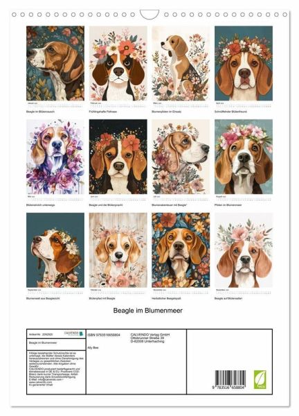 Entdecken Sie den zauberhaften KI Beagle Kalender, der Sie Monat für Monat mit liebevoll illustrierten Beagel-Hunden und farbenfrohen Blumenmotiven verzaubert. Jeder Monat bringt eine neue Szene, in der süße Beagel mit einer Vielfalt von Blüten in harmonischem Einklang stehen und Ihr Herz erwärmen. Perfekt für Hundeliebhaber und Blumenfreunde gleichermaßen, bietet dieser Kalender nicht nur ästhetischen Genuss, sondern auch eine tägliche Portion Freude.