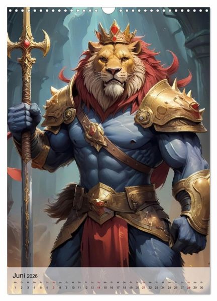 Unser Kalender 'Legends of the Realm' entführt Sie in eine Welt der Fantasie, in der mächtige Tiere als tapfere mittelalterliche Krieger die Schlacht zwischen Gut und Böse kämpfen. Jeder Monat zeigt epische Szenen voller heroischem Kampf, während Löwen, Krokodile, Wölfe und andere majestätische Wesen ihre Kräfte vereinen, um das Böse zu besiegen und die Welt zu beschützen