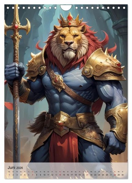 Unser Kalender 'Legends of the Realm' entführt Sie in eine Welt der Fantasie, in der mächtige Tiere als tapfere mittelalterliche Krieger die Schlacht zwischen Gut und Böse kämpfen. Jeder Monat zeigt epische Szenen voller heroischem Kampf, während Löwen, Krokodile, Wölfe und andere majestätische Wesen ihre Kräfte vereinen, um das Böse zu besiegen und die Welt zu beschützen