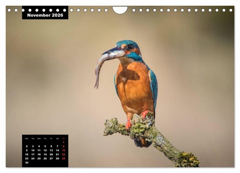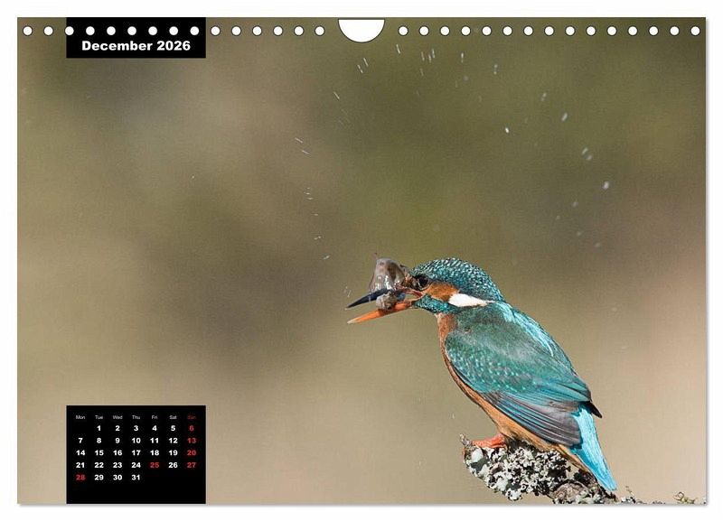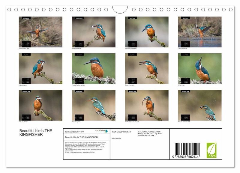 QUALITY - High-quality photo calendar with 12 beautiful images on light-resistant paper, robust spiral binding with hanger.SUSTAINABLE - Significant waste reduction due to print-on-demand production, environmentally friendly FSC-certified paper, produced in the UK, climate-conscious logistical processes.PERFECT GIFT - calendars for friends and family, for children, all ages and all occasions, from Christmas to birthdays and everything in between.LOTS OF CHOICE - Wall calendars in different sizes (DIN A4 and DIN A3), for any topic and personal taste, featuring photography, painting and illustrations.Photographs of kingfishers, author: Alan Tunnicliffe