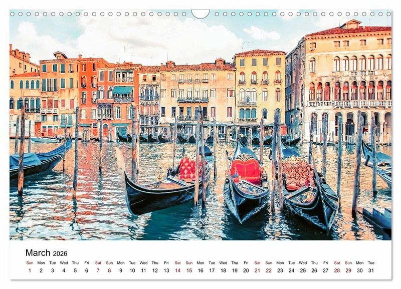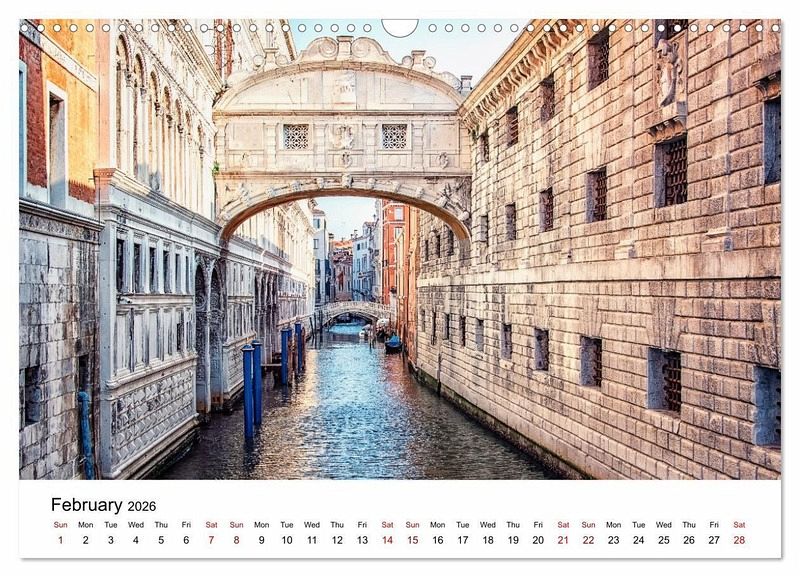 Discover the Bridge of Sighs, the Grand Canal, the St. Mark's Basilica, or the Rialto Bridge in this stunning calendar.