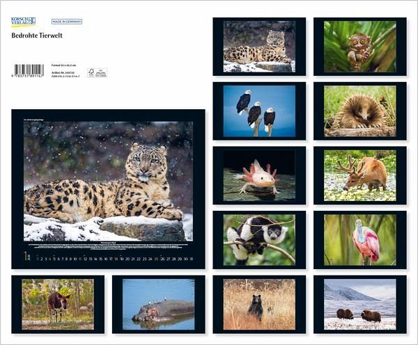 Der Mensch bedroht mit seinem Verhalten Tiere und Natur gleichermaßen. Viele Tierarten gelten als gefährdet oder sind sogar vom Aussterben bedroht - darunter einige der faszinierendsten und beliebtesten Spezies: Primaten, Nashörner und Raubkatzen. Mit großartigen Aufnahmen und spannenden Kurztexten ist dieser Kalender nicht nur ein toller Wandschmuck, sondern auch ein Plädoyer für den Schutz der Artenvielfalt auf unserem Planeten. Klimaneutral hergestellt auf nachhaltig produziertem Papier.