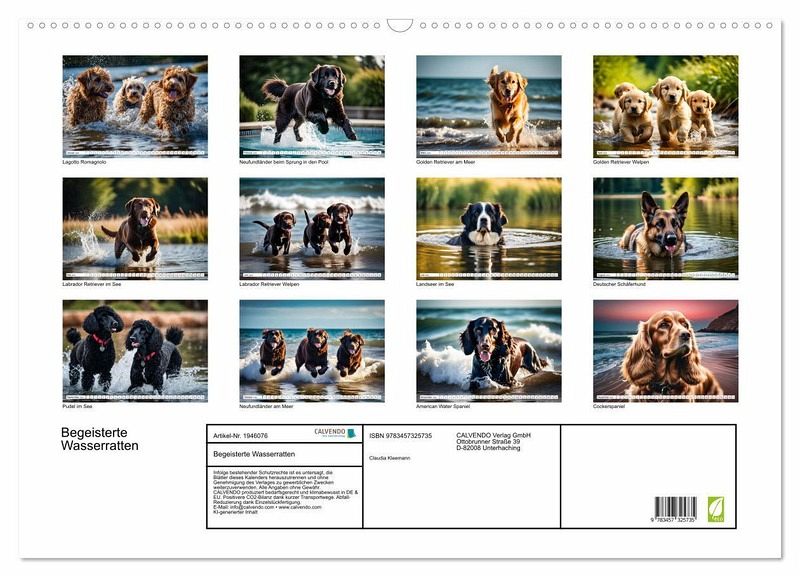 QUALITÄT - Hochwertiger Fotokalender mit 12 wunderschönen Motiven auf lichtbeständigem Bilderdruckpapier, robuste Spiralbindung mit Aufhängebügel.NACHHALTIG - deutliche Abfallreduzierung durch bedarfsgerechte Einzelstückfertigung, umweltfreundliches FSC-zertifiziertes Papier, Produktion in Deutschland, klimabewusste Logistik.PERFEKTES GESCHENK - Kalender für Freundeund Familie, für Kinder und Erwachsene, jung und alt, zu Weihnachten, Geburtstag oder zwischendurch.VIELFALT - Bildkalender in verschiedenen Formaten, z.B. DIN A5, DIN A4, DIN A3 sowie DIN A2. Ob Naturmotiv, Gemälde oder Fotos, ideal für ein persönliches Wohlfühlambiente.Acht Wasser liebende Hunderassen im Portrait von Autor(in): Claudia Kleemann