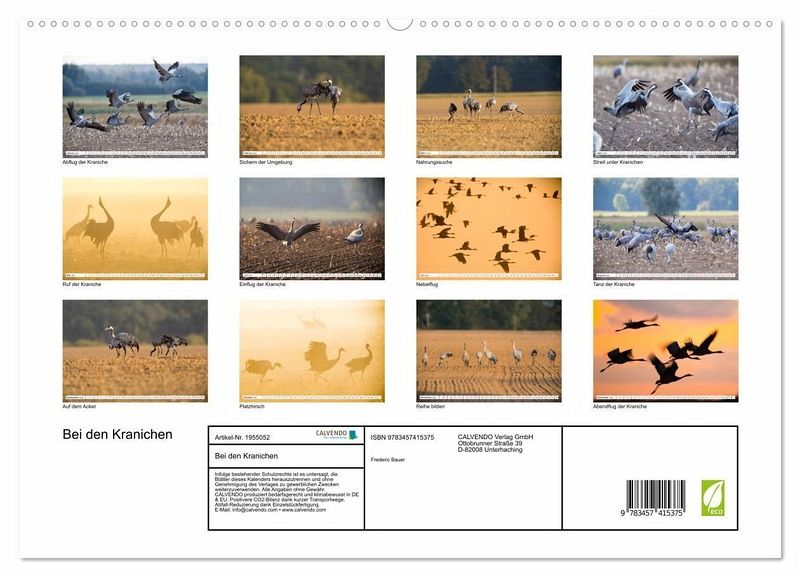 PREMIUM-LINIE - Brillanter Fotokalender mit 12 wunderschönen Motiven, Kunstdruck in Hochglanz in Museumsqualität.QUALITÄT - edle Materialien, stabile Rückwand mit 2 innovativen Einstecktaschen für eine optimale Präsentation an der Wand.NACHHALTIG - deutliche Abfallreduzierung durch bedarfsgerechte Einzelstückfertigung, umweltfreundliches FSC-zertifiziertes Papier, Produktion in Deutschland, klimabewusste Logistik.PERFEKTES GESCHENK - Kalender für Freunde und Familie, für Kinder und Erwachsene, jung und alt, zu Weihnachten, Geburtstag oder zwischendurch.Kraniche in unterschiedlichen Lichtverhältnissen und Szenen fotografiert von Autor(in): Frederic Bauer
