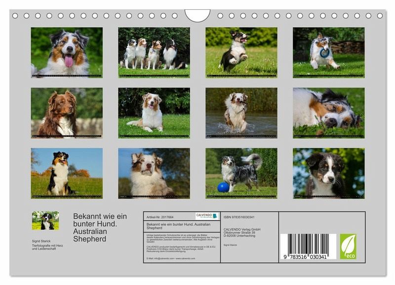 QUALITÄT - Hochwertiger Fotokalender mit 12 wunderschönen Motiven auf lichtbeständigem Bilderdruckpapier, robuste Spiralbindung mit Aufhängebügel.NACHHALTIG - deutliche Abfallreduzierung durch bedarfsgerechte Einzelstückfertigung, umweltfreundliches FSC-zertifiziertes Papier, Produktion in Deutschland, klimabewusste Logistik.PERFEKTES GESCHENK - Kalender für Freunde und Familie, für Kinder und Erwachsene, jung und alt, zu Weihnachten, Geburtstag oder zwischendurch.VIELFALT - Bildkalender in verschiedenen Formaten, z.B. DIN A5, DIN A4, DIN A3 sowie DIN A2. Ob Naturmotiv, Gemälde oder Fotos, ideal für ein persönliches Wohlfühlambiente.Der Australian Shepherd, auch liebevoll Aussie genannt auf 13 wunderschönen Fotos von Autor(in): SiSta-Tierfoto