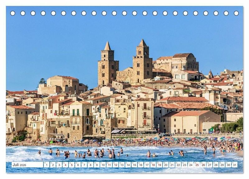 Juli: Cefalù mit der normannischen Kathedrale in Sizilien