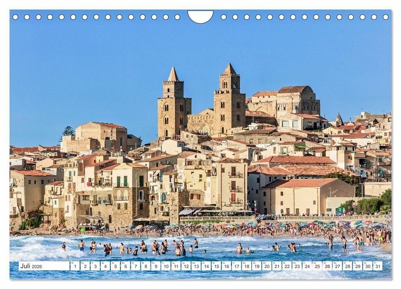 Juli: Cefalù mit der normannischen Kathedrale in Sizilien
