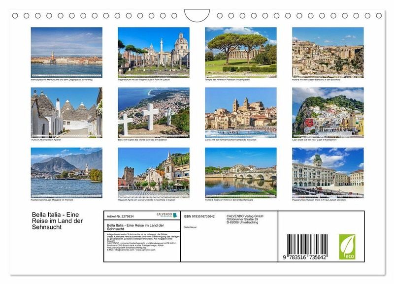 QUALITÄT - Hochwertiger Fotokalender mit 12 wunderschönen Motiven auf lichtbeständigem Bilderdruckpapier, robuste Spiralbindung mit Aufhängebügel.NACHHALTIG - deutliche Abfallreduzierung durch bedarfsgerechte Einzelstückfertigung, umweltfreundliches FSC-zertifiziertes Papier, Produktion in Deutschland, klimabewusste Logistik.PERFEKTES GESCHENK - Kalender für Freunde und Familie, für Kinder und Erwachsene, jung und alt, zu Weihnachten, Geburtstag oder zwischendurch.VIELFALT - Bildkalender in verschiedenen Formaten, z.B. DIN A5, DIN A4, DIN A3 sowie DIN A2. Ob Naturmotiv, Gemälde oder Fotos, ideal für ein persönliches Wohlfühlambiente.Eine Reise durch Landschaften und Städte Italiens zwischen dem Norden Italiens und Sizilien. von Autor(in): Dieter Meyer