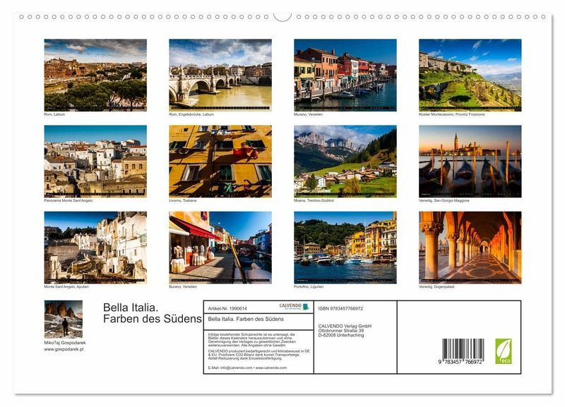 PREMIUM-LINIE - Brillanter Fotokalender mit 12 wunderschönen Motiven, Kunstdruck in Hochglanz in Museumsqualität.QUALITÄT - edle Materialien, stabile Rückwand mit 2 innovativen Einstecktaschen für eine optimale Präsentation an der Wand.NACHHALTIG - deutliche Abfallreduzierung durch bedarfsgerechte Einzelstückfertigung, umweltfreundliches FSC-zertifiziertes Papier, Produktion in Deutschland, klimabewusste Logistik.PERFEKTES GESCHENK - Kalender für Freunde und Familie, für Kinder und Erwachsene, jung und alt, zu Weihnachten, Geburtstag oder zwischendurch.Originelle und überraschende Fotos aus Italien von Autor(in): Gospodarek Mikolaj