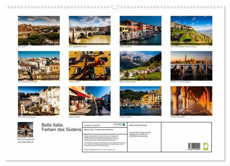 QUALITÄT - Hochwertiger Fotokalender mit 12 wunderschönen Motiven auf lichtbeständigem Bilderdruckpapier, robuste Spiralbindung mit Aufhängebügel.NACHHALTIG - deutliche Abfallreduzierung durch bedarfsgerechte Einzelstückfertigung, umweltfreundliches FSC-zertifiziertes Papier, Produktion in Deutschland, klimabewusste Logistik.PERFEKTES GESCHENK - Kalender für Freunde und Familie, für Kinder und Erwachsene, jung und alt, zu Weihnachten, Geburtstag oder zwischendurch.VIELFALT - Bildkalender in verschiedenen Formaten, z.B. DIN A5, DIN A4, DIN A3 sowie DIN A2. Ob Naturmotiv, Gemälde oder Fotos, ideal für ein persönliches Wohlfühlambiente.Originelle und überraschende Fotos aus Italien von Autor(in): Gospodarek Mikolaj