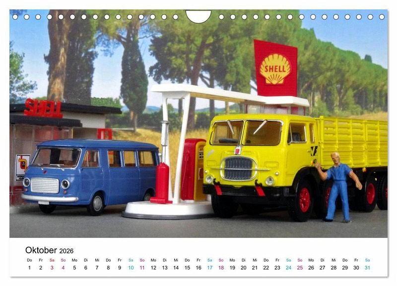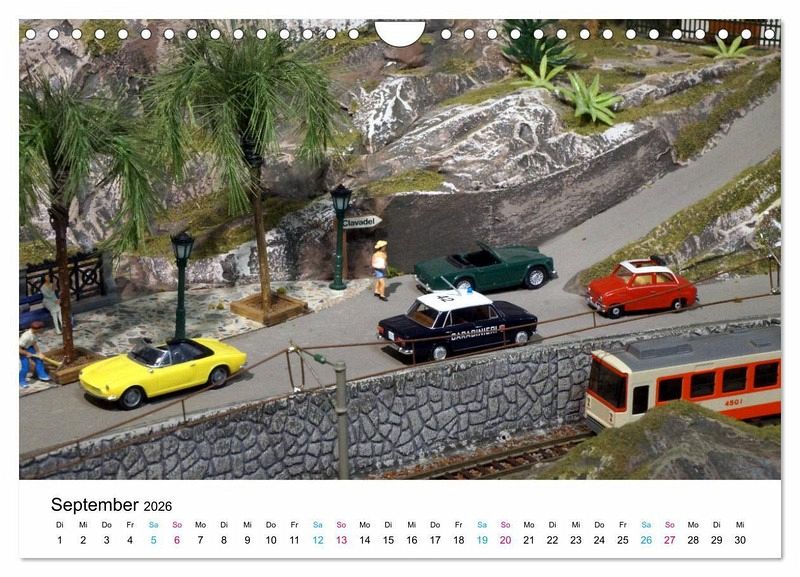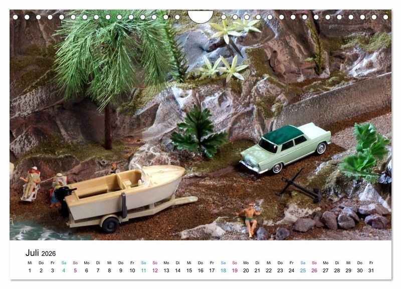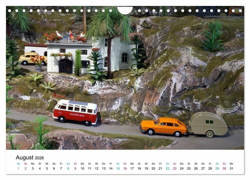 Urlaubsgefühle im Hobbyraum! Dieser attraktive Wandkalender verbindet Urlaubserinnerungen mit unserem Modellbauhobby. Über die detailgetreuen Autominiaturen freut sich das Auge des engagierten Sammlers.
