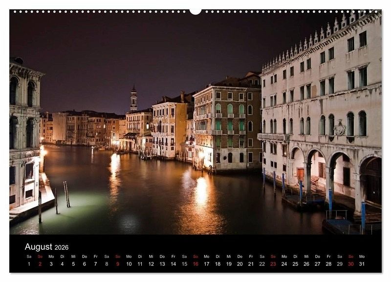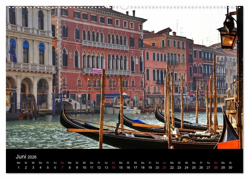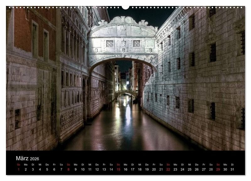 Die Lagunenstadt Venedig ist mit seiner speziellen Architektur einzigartig auf der Welt. Auf vielen kleinen Inseln in der venezianischen Lagunenlandschaft gebaut, stehen dort prunkvolle Paläste, eingerahmt von Kanälen. Unvergesslich eine Gondelfahrt über den Canal Grande. Kirchen wie Santa Maria della Salute oder San Giorgio Maggiore überragen majestätisch die Lagunenstadt. Kunstvoll gebaute Brücken wie die Rialtobrücke und die Seufzerbrücke gelten als Wahrzeichen von Venedigs. An jeder Ecke findet man malerische kleine Gassen, romantische Kanäle und typische venezianische Häuser. Dieser Fotokalender lädt Sie zu einem Spaziergang durch Bella Venezia ein.