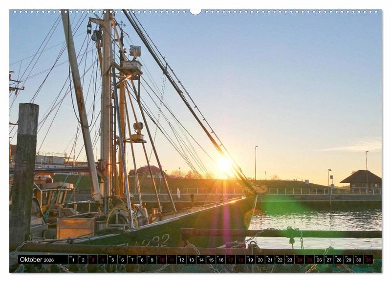 Oktober: Sonnenstrahlen an einem Kutter, Bensersiel