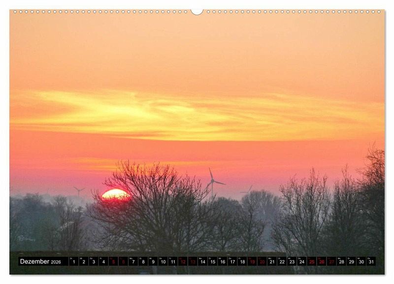 Dezember: Sonnenuntergang über den Dächern von Bensersiel