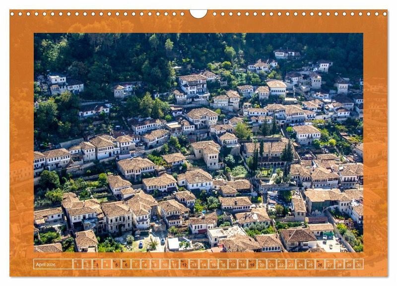 Berat, die strahlende "Stadt der tausend Fenster", verzaubert mit ihrem einzigartigen Zusammenspiel aus Licht, Geschichte und Kultur. Eingebettet zwischen sanften Hügeln und dem Fluss Osum erhebt sich die jahrhundertealte Stadt mit ihren weißen Steinhäusern, die sich malerisch an den Hang schmiegen. Enge Gassen, byzantinische Kirchen und osmanische Baukunst erzählen Geschichten vergangener Zeiten. Dieser Kalender lädt dazu ein, das historische Herz Albaniens zu entdecken - ein Ort, an dem Vergangenheit und Gegenwart in poetischem Gleichklang aufeinandertreffen.