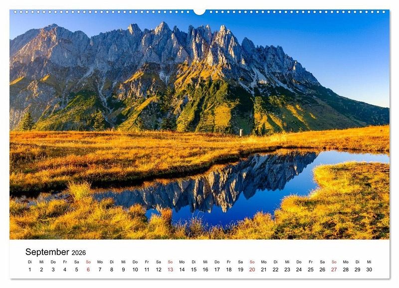 September: Mandlwand (Hochkönig) spiegelt sich im Wasser
