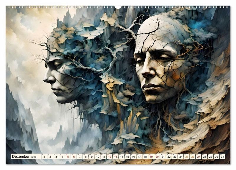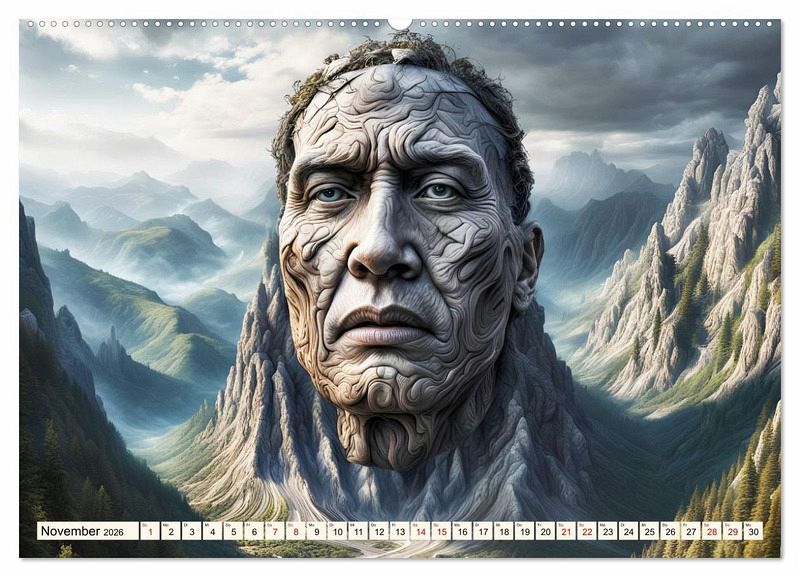 In diesem besonderen Kalender erwachen Berge zum Leben, während aus ihnen charakterstarke Gesichter hervorragen.