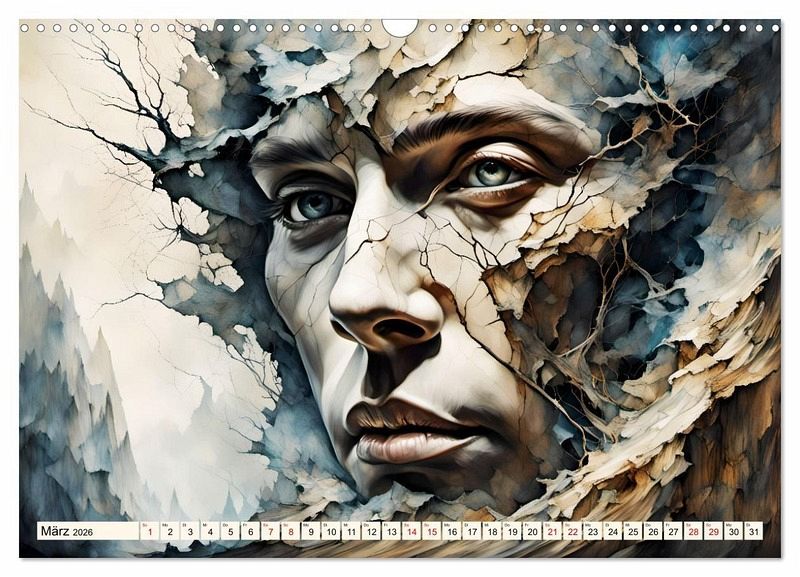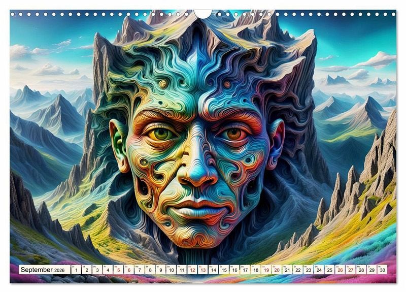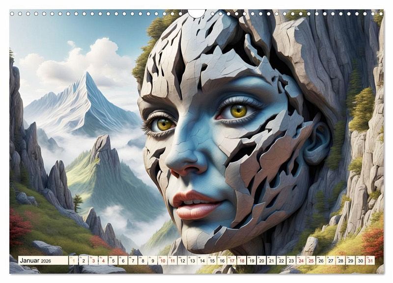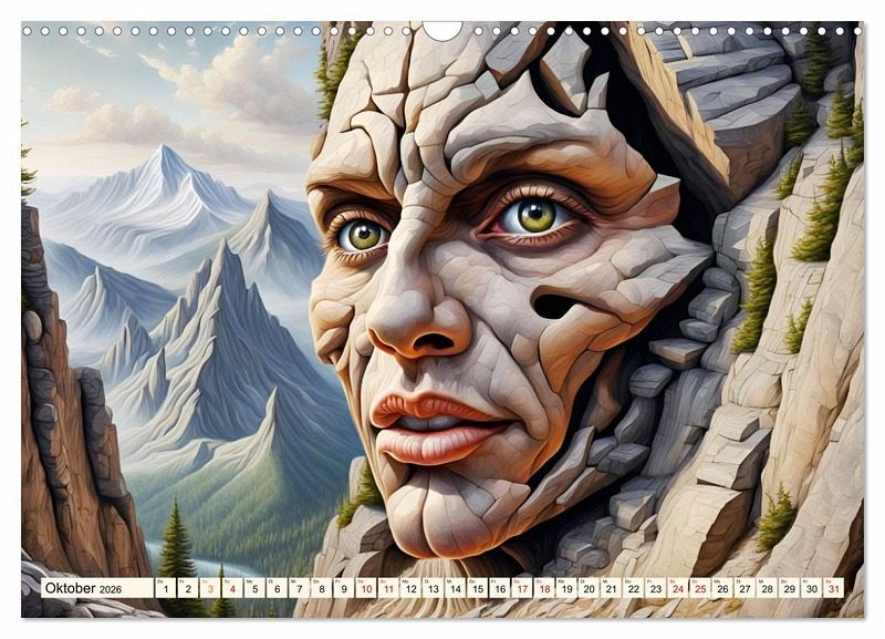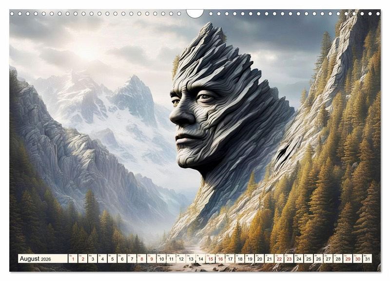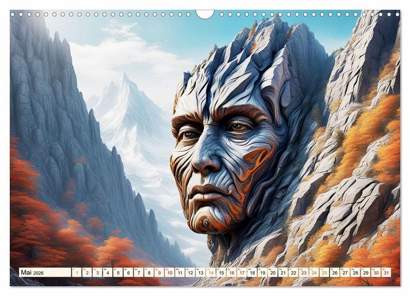 In diesem besonderen Kalender erwachen Berge zum Leben, während aus ihnen charakterstarke Gesichter hervorragen.