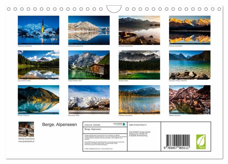 QUALITÄT - Hochwertiger Fotokalender mit 12 wunderschönen Motiven auf lichtbeständigem Bilderdruckpapier, robuste Spiralbindung mit Aufhängebügel.NACHHALTIG - deutliche Abfallreduzierung durch bedarfsgerechte Einzelstückfertigung, umweltfreundliches FSC-zertifiziertes Papier, Produktion in Deutschland, klimabewusste Logistik.PERFEKTES GESCHENK - Kalender für Freunde und Familie, für Kinder und Erwachsene, jung und alt, zu Weihnachten, Geburtstag oder zwischendurch.VIELFALT - Bildkalender in verschiedenen Formaten, z.B. DIN A5, DIN A4, DIN A3 sowie DIN A2. Ob Naturmotiv, Gemälde oder Fotos, ideal für ein persönliches Wohlfühlambiente.Eindrucksvolle Motive aus der Alpenregion in 4 Jahreszeiten von Autor(in): Gospodarek Mikolaj