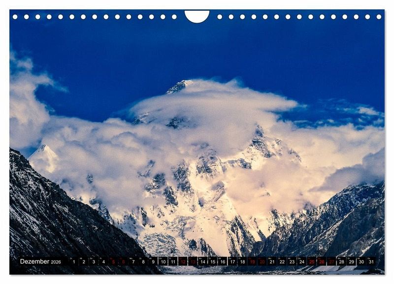 Der Karakorum wird als höchstes Gebirge der Welt bezeichnet. Mehr als die Hälfte der Gebirgsfläche liegt oberhalb von 5000 Meter. Lassen Sie sich von meinem Kalender in die spektakuläre Bergwelt des Karakorum entführen.
