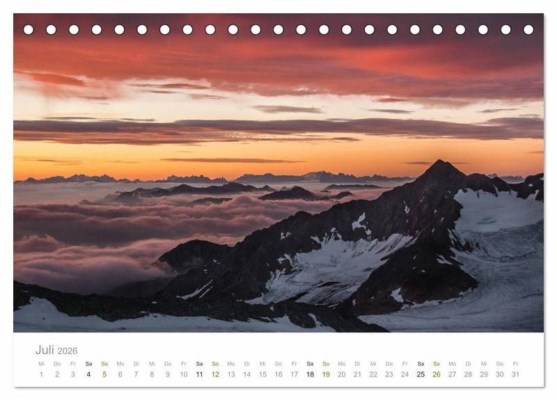 Majästhetisch thronen die Berge über den Tälern und üben eine erstaunliche Anziehungskraft auf uns Menschen aus. Nach einer mühevollen Besteigung bekommt man die volle Schönheit der Alpen zu Gesicht. Der Kalender nimmt den Betrachter mit hinauf, quer durch die Alpen.