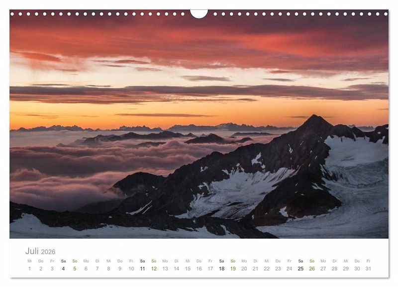 Majästhetisch thronen die Berge über den Tälern und üben eine erstaunliche Anziehungskraft auf uns Menschen aus. Nach einer mühevollen Besteigung bekommt man die volle Schönheit der Alpen zu Gesicht. Der Kalender nimmt den Betrachter mit hinauf, quer durch die Alpen.