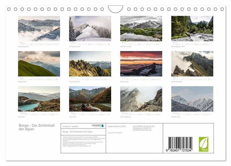 QUALITÄT - Hochwertiger Fotokalender mit 12 wunderschönen Motiven auf lichtbeständigem Bilderdruckpapier, robuste Spiralbindung mit Aufhängebügel.NACHHALTIG - deutliche Abfallreduzierung durch bedarfsgerechte Einzelstückfertigung, umweltfreundliches FSC-zertifiziertes Papier, Produktion in Deutschland, klimabewusste Logistik.PERFEKTES GESCHENK - Kalender für Freunde und Familie, für Kinder und Erwachsene, jung und alt, zu Weihnachten, Geburtstag oder zwischendurch.VIELFALT - Bildkalender in verschiedenen Formaten, z.B. DIN A5, DIN A4, DIN A3 sowie DIN A2. Ob Naturmotiv, Gemälde oder Fotos, ideal für ein persönliches Wohlfühlambiente.Eine Reise durch die Bergwelt von Autor(in): Jacqueline Wagner