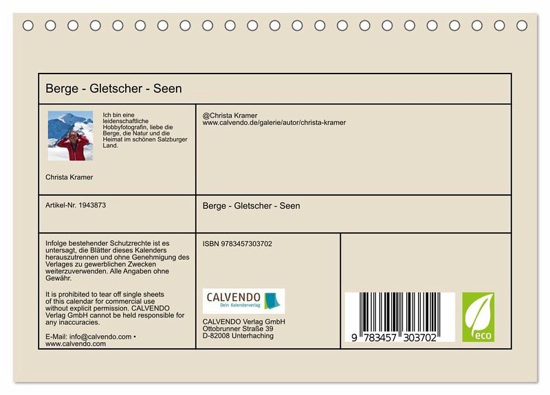 QUALITÄT - Hochwertiger Fotokalender mit 12 wunderschönen Motiven auf lichtbeständigem Bilderdruckpapier, robuste Spiralbindung.NACHHALTIG - deutliche Abfallreduzierung durch bedarfsgerechte Einzelstückfertigung, umweltfreundliches FSC-zertifiziertes Papier, Produktion in Deutschland, klimabewusste Logistik.PERFEKTES GESCHENK - Kalender für Freunde und Familie, für Kinder und Erwachsene, jung und alt, zu Weihnachten, Geburtstag oder zwischendurch.VIELFALT - Bildkalender in verschiedenen Formaten, z.B. DIN A5, DIN A4, DIN A3 sowie DIN A2. Ob Naturmotiv, Gemälde oder Fotos, ideal für ein persönliches Wohlfühlambiente.Imposante Eindrücke unserer Berge, Gletscher und Seen in Österreichs Alpen von Autor(in): Christa Kramer