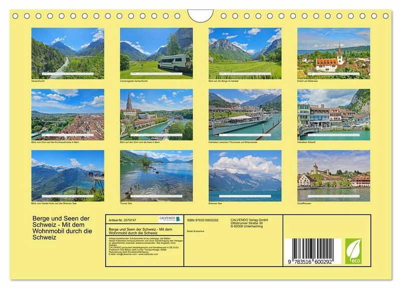 QUALITÄT - Hochwertiger Fotokalender mit 12 wunderschönen Motiven auf lichtbeständigem Bilderdruckpapier, robuste Spiralbindung mit Aufhängebügel.NACHHALTIG - deutliche Abfallreduzierung durch bedarfsgerechte Einzelstückfertigung, umweltfreundliches FSC-zertifiziertes Papier, Produktion in Deutschland, klimabewusste Logistik.PERFEKTES GESCHENK - Kalender für Freunde und Familie, für Kinder und Erwachsene, jung und alt, zu Weihnachten, Geburtstag oder zwischendurch.VIELFALT - Bildkalender in verschiedenen Formaten, z.B. DIN A5, DIN A4, DIN A3 sowie DIN A2. Ob Naturmotiv, Gemälde oder Fotos, ideal für ein persönliches Wohlfühlambiente.Es ist ein Genuss, die Berge und Seen der Schweiz zu erleben. von Autor(in): Fotine