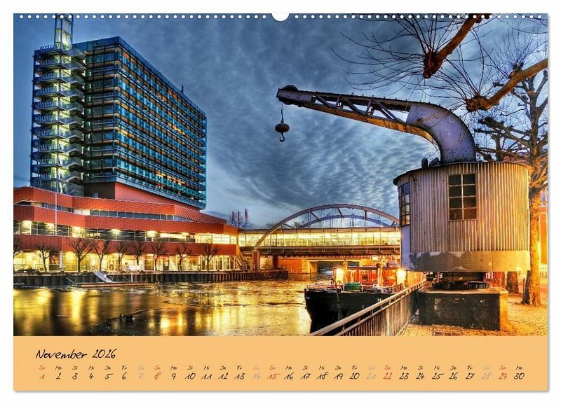 November: Alter Hafenkran am Serrahn und Einkaufszentrum CCB
