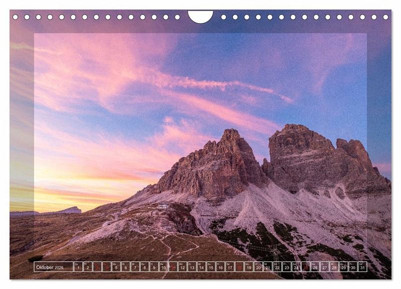 Die Dolomiten sind eindeutig das spektakulärste Gebiet der Alpen, ein wunderschöner Urlaubsort zum wandern, entspannen und genießen. Holen Sie sich das Gefühl der Verbundenheit mit der unberührten Natur in Form eines Kalenders in Ihr Wohnzimmer.