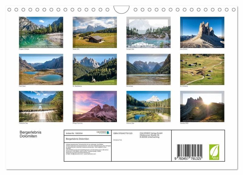 QUALITÄT - Hochwertiger Fotokalender mit 12 wunderschönen Motiven auf lichtbeständigem Bilderdruckpapier, robuste Spiralbindung mit Aufhängebügel.NACHHALTIG - deutliche Abfallreduzierung durch bedarfsgerechte Einzelstückfertigung, umweltfreundliches FSC-zertifiziertes Papier, Produktion in Deutschland, klimabewusste Logistik.PERFEKTES GESCHENK - Kalender für Freunde und Familie, für Kinder und Erwachsene, jung und alt, zu Weihnachten, Geburtstag oder zwischendurch.VIELFALT - Bildkalender in verschiedenen Formaten, z.B. DIN A5, DIN A4, DIN A3 sowie DIN A2. Ob Naturmotiv, Gemälde oder Fotos, ideal für ein persönliches Wohlfühlambiente.Die Vielfalt der wunderschönen Gebirgsgruppe Dolomiten in 12 grandiosen Bildern genießen. von Autor(in): Christina Fink