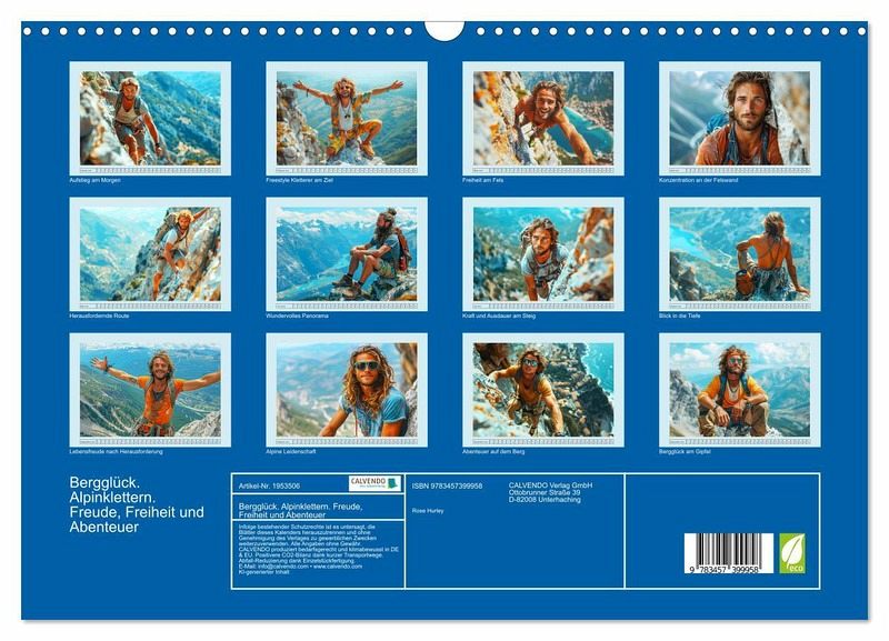 Erleben Sie die atemberaubenden Leistungen der alpinen Bergkletterer. Dieser Kalender wurde mit Hilfe von KI erstellt und begleitet Sie durch ein Jahr voller Leidenschaft und Abenteuer. Vom majestätischen Gipfelblick bis zum Adrenalinrausch des Freestyle-Kletterns, erzählt jeder Monat eine Geschichte von Entschlossenheit, Überwindung und dem unvergleichlichen Glück, das nur die Berge bieten können.