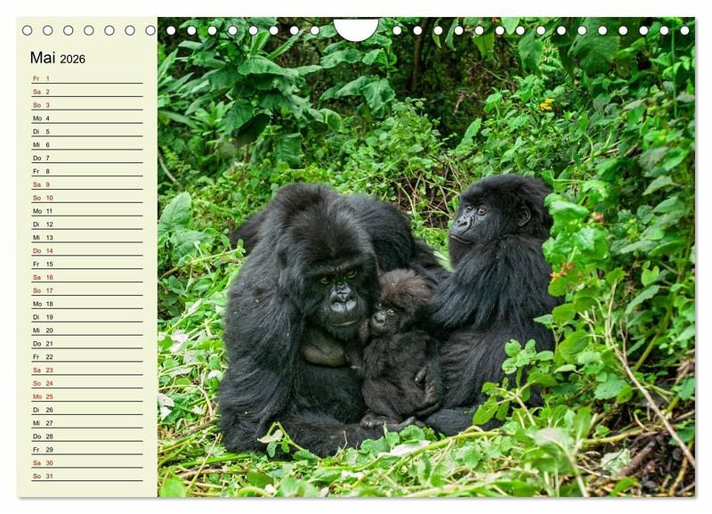 QUALITÄT - Hochwertiger Fotokalender mit 12 wunderschönen Motiven auf lichtbeständigem Bilderdruckpapier, robuste Spiralbindung mit Aufhängebügel.NACHHALTIG - deutliche Abfallreduzierung durch bedarfsgerechte Einzelstückfertigung, umweltfreundliches FSC-zertifiziertes Papier, Produktion in Deutschland, klimabewusste Logistik.PERFEKTES GESCHENK - Kalender für Freunde und Familie, für Kinder und Erwachsene, jung und alt, zu Weihnachten, Geburtstag oder zwischendurch.VIELFALT - Bildkalender in verschiedenen Formaten, z.B. DIN A5, DIN A4, DIN A3 sowie DIN A2. Ob Naturmotiv, Gemälde oder Fotos, ideal für ein persönliches Wohlfühlambiente.In den Virunga-Vulkanen, im Grenzgebiet zwischen Ruanda, Uganda und dem Kongo, leben die letzten Berggorillas im dichten Bergnebelwald. Erhalten Sie hautnahe Eindrücke aus dem Alltag der riesigen Menschenaffen. von Autor(in): Guenter Guni