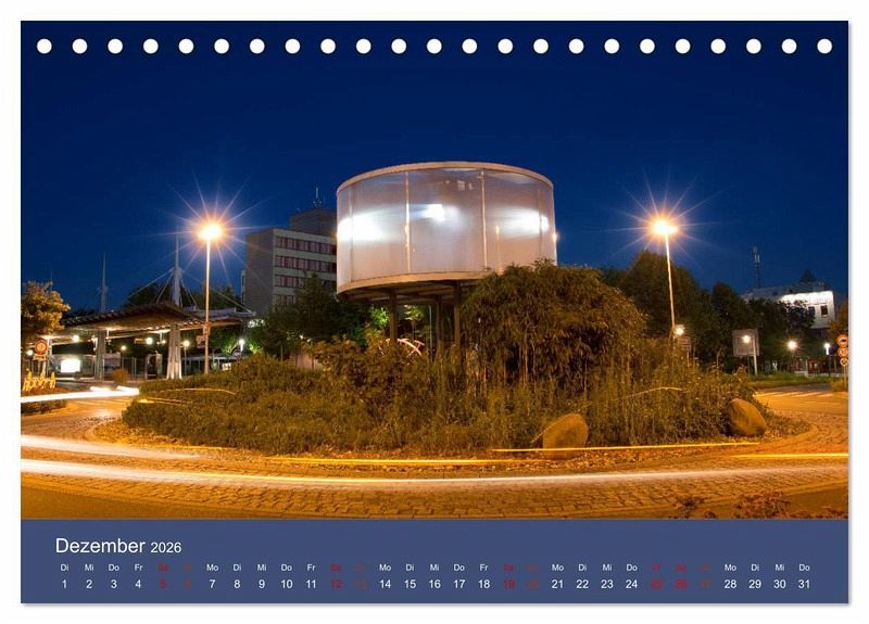 Dezember: Kreisverkehr am Rathaus bei Nacht