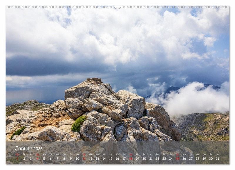 Kalendarische Reise mit technisch und kompositorisch hochwertigen Landschaftsaufnahmen der mallorquinischen Bergwelt. Atemberaubende Natur, beeindruckendes Tramuntana Gebirge, tolles Bergpanorama sowie vor allem faszinierende Aus- und Fernblicke über Mallorca: all dies festgehalten in besonderen und persönlichen fotografischen Momenten.
