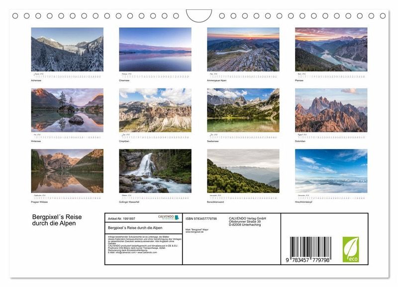 QUALITÄT - Hochwertiger Fotokalender mit 12 wunderschönen Motiven auf lichtbeständigem Bilderdruckpapier, robuste Spiralbindung mit Aufhängebügel.NACHHALTIG - deutliche Abfallreduzierung durch bedarfsgerechte Einzelstückfertigung, umweltfreundliches FSC-zertifiziertes Papier, Produktion in Deutschland, klimabewusste Logistik.PERFEKTES GESCHENK - Kalender für Freunde und Familie, für Kinder und Erwachsene, jung und alt, zu Weihnachten, Geburtstag oder zwischendurch.VIELFALT - Bildkalender in verschiedenen Formaten, z.B. DIN A5, DIN A4, DIN A3 sowie DIN A2. Ob Naturmotiv, Gemälde oder Fotos, ideal für ein persönliches Wohlfühlambiente.Der Wanderkalender mit den schönsten Bildern aus den Alpen von Autor(in): Bergpixel