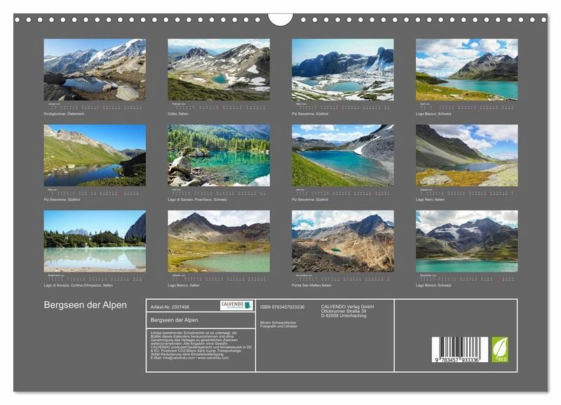 QUALITÄT - Hochwertiger Fotokalender mit 12 wunderschönen Motiven auf lichtbeständigem Bilderdruckpapier, robuste Spiralbindung mit Aufhängebügel.NACHHALTIG - deutliche Abfallreduzierung durch bedarfsgerechte Einzelstückfertigung, umweltfreundliches FSC-zertifiziertes Papier, Produktion in Deutschland, klimabewusste Logistik.PERFEKTES GESCHENK - Kalender für Freunde und Familie, für Kinder und Erwachsene, jung und alt, zu Weihnachten, Geburtstag oder zwischendurch.VIELFALT - Bildkalender in verschiedenen Formaten, z.B. DIN A5, DIN A4, DIN A3 sowie DIN A2. Ob Naturmotiv, Gemälde oder Fotos, ideal für ein persönliches Wohlfühlambiente.Bergseen der Alpen von Autor(in): Fotografin Schwarzfischer Miriam