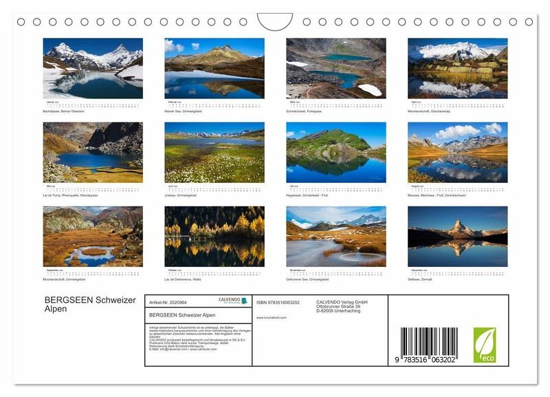 QUALITÄT - Hochwertiger Fotokalender mit 12 wunderschönen Motiven auf lichtbeständigem Bilderdruckpapier, robuste Spiralbindung mit Aufhängebügel.NACHHALTIG - deutliche Abfallreduzierung durch bedarfsgerechte Einzelstückfertigung, umweltfreundliches FSC-zertifiziertes Papier, Produktion in Deutschland, klimabewusste Logistik.PERFEKTES GESCHENK - Kalender für Freunde und Familie, für Kinder und Erwachsene, jung und alt, zu Weihnachten, Geburtstag oder zwischendurch.VIELFALT - Bildkalender in verschiedenen Formaten, z.B. DIN A5, DIN A4, DIN A3 sowie DIN A2. Ob Naturmotiv, Gemälde oder Fotos, ideal für ein persönliches Wohlfühlambiente.Entdecken Sie die atemberaubende Seelandschaften im Schweizer Hochgebirge von Autor(in): Lucyna Koch