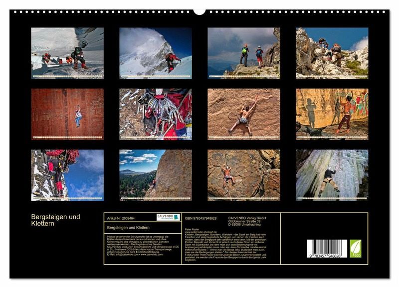 Klettern, Bergsteigen, Bouldern, Wandern - der Sport am Berg hat viele Facetten und viele begeisterte Anhänger, von denen die meisten auch wissen, dass der Bergsport sehr gefährlich sein kann. Mit der gehörigen Portion Respekt und Vorsicht ist jedoch auch dieser Sport ein sicherer Sport mit Suchtfaktor, bei dem man sich jede Belohnung mit viel Anstrengung erkämpfen muss oder wie Jean-Christophe Lafaille einmal treffend formulierte: "Wenn man die Berge liebt, akzeptiert man auch, dass sie die Bedingungen stellen." Für diesen Kalender hat der Fotokünstler Peter Roder beeindruckende Bilder zusammengestellt und gestaltet, sie werden die Freunde des Bergsports durch das ganze Jahr begleiten.