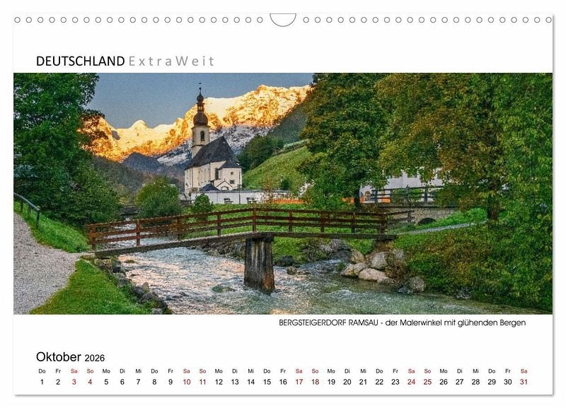 Dieter Wilczek - Erlebnisfotograf und naturverbunden - besucht das Bergsteigerdorf Ramsau seit vielen Jahren und zu jeder Jahreszeit. In der Kalenderserie "DEUTSCHLAND Extra Weit" zeigt er die faszinierenden Landschaften Deutschlands in besonders ausdrucksstarken Panoramabildern. Wie seine Aufnahmen belegen, hat jede Jahreszeit ihren ganz eigenen unwiderstehlichen Charme: Attraktiv im Winterkleid, geheimnisvoll im Nebel, farbenprächtig bei Kaiserwetter im Sommer und zur Wanderzeit im Herbst...