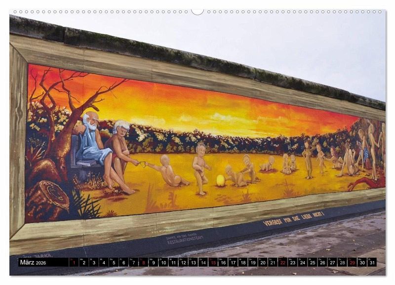 Entdecken Sie mit diesem Kalender die weltweit längste Open-Air-Galerie und erleben Sie einen wichtigen Teil der Geschichte Berlins. Die East Side Gallery befindet sich in der Mühlenstraße in Berlin - Friedrichshain zwischen der Oberbaumbrücke und dem Ostbahnhof entlang der Spree. Die Spree war damals die eigentlichen Grenze.