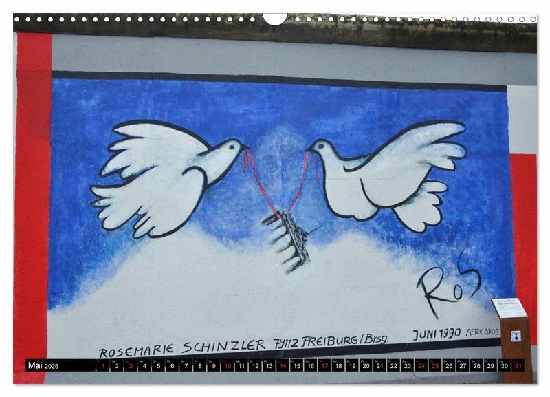 Entdecken Sie mit diesem Kalender die weltweit längste Open-Air-Galerie und erleben Sie einen wichtigen Teil der Geschichte Berlins. Die East Side Gallery befindet sich in der Mühlenstraße in Berlin - Friedrichshain zwischen der Oberbaumbrücke und dem Ostbahnhof entlang der Spree. Die Spree war damals die eigentlichen Grenze.