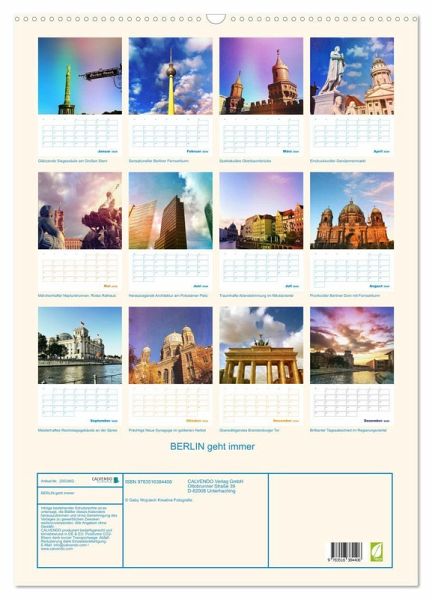 Du bist total Berlin-begeistert. Berlin ist Deine Heimat. Berlin ist Deine Reise-Sehnsucht. Berlin ist Deine Reise-Erinnerung. Dann laß Dich von diesen vergnügten Stadtaussichten erobern. Plane Dein tolles neues Jahr einfach mit dieser Calvendo Edition. Tauche ab, in wunderbare Tagträume, das ganze Jahr.
